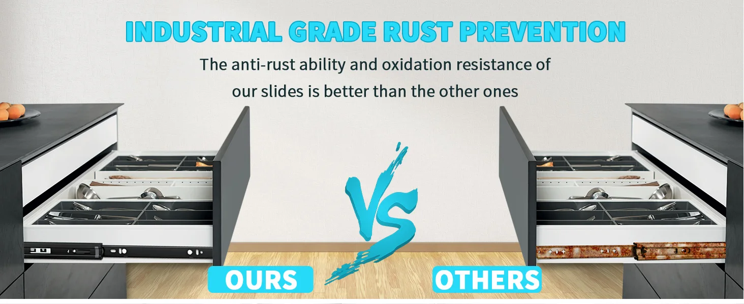 Trabajo contra la rompina y suave La capacidad antirrenosa y la resistencia a la oxidación de nuestros portaobjetos es superior a los demás debido al tratamiento especial de la superficie de recubrimiento electroforético; Con doble bola de cojinete de grado industrial en el interior, los cajones se deslizan suavemente a pesar de que llevan artículos pesados; Con una almohadilla de goma, que es un dispositivo resistente al desgaste y resistente al impacto, los cajones se deslizan en silencio sin ruido de colisión.