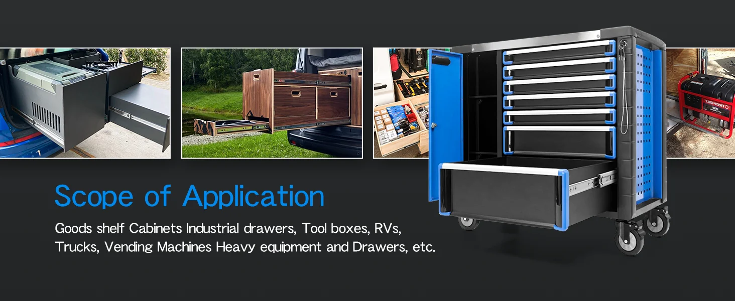 51 Tobogados de servicio pesado industrial amplio, etc.), Rail de tobogán de tres secciones, riel de deslizamiento de cajón de servicio pesado, riel de cajón, rieles de tres secciones de servicio pesado,